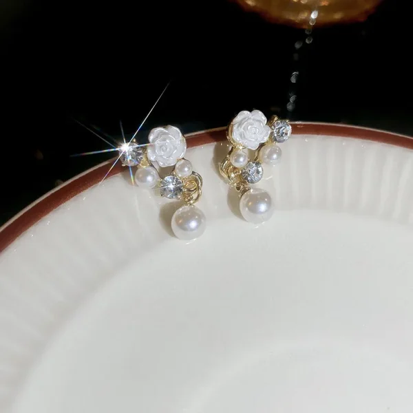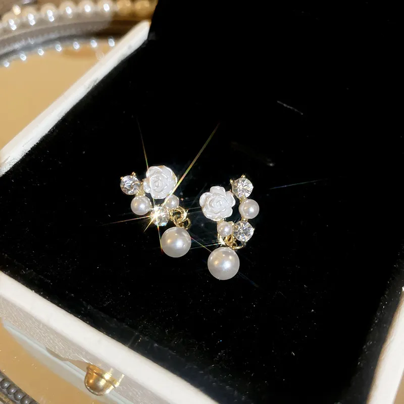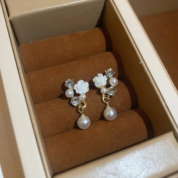 Flower Inlay Rhinestone Drop Earrings